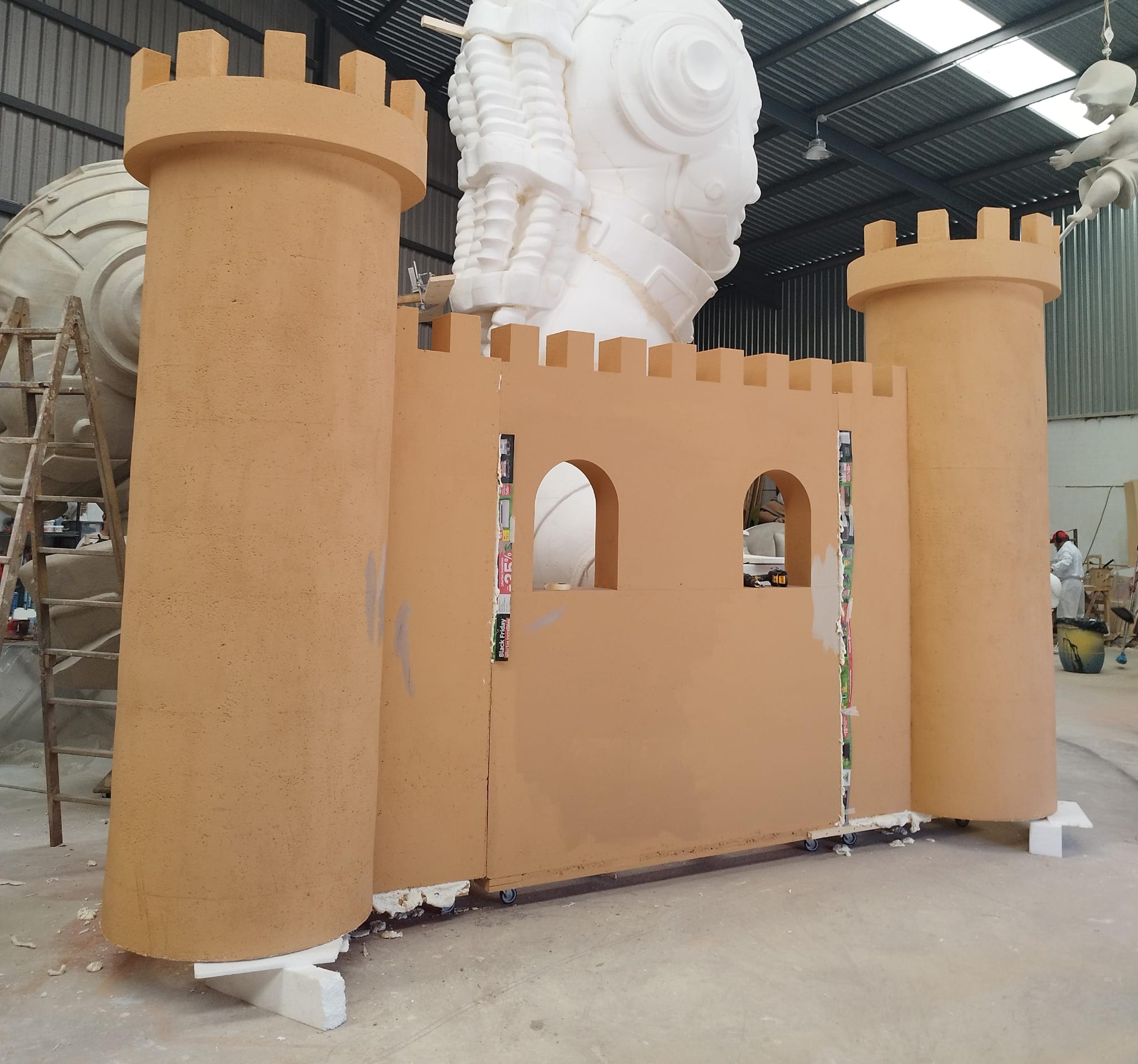 El castillo fue modelado por el equipo técnico y artístico de Valua, que fusionó la escultura artesanal con técnicas de corte CNC y modelado tridimensional digital. Cada pieza se trabajó en el taller con precisión para lograr un acabado natural, similar a un castillo de arena tallado a gran escala.