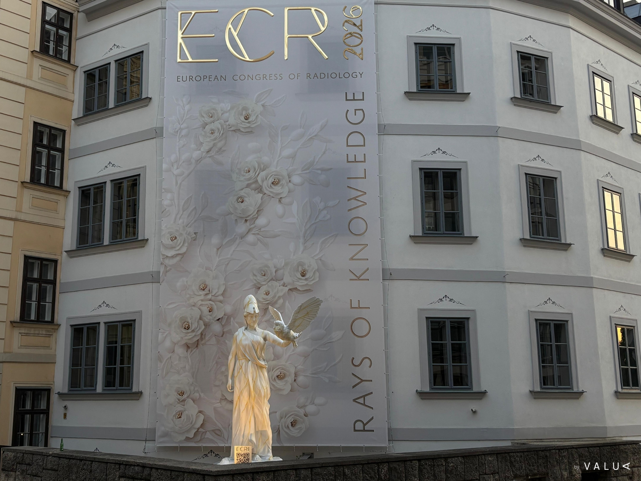 En el corazón de Viena, una escultura monumental de Atenea de tres metros de altura da la bienvenida al Congreso Europeo de Radiología (ECR) 2026. Creada por Valua, esta pieza marmórea con un imponente búho simboliza los valores del evento: conocimiento, precisión y avance científico.